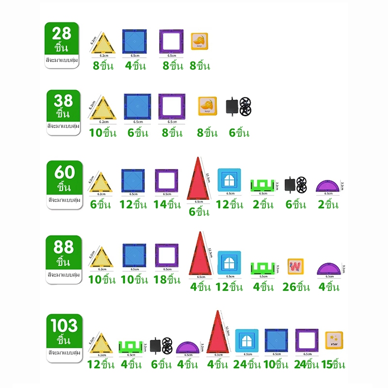 MAGPLAYER บล็อกกระเบื้องแม่เหล็กหน้าต่างสี 28/38/88/103pcs ของเล่นเพื่อการศึกษาสําหรับชายและหญิง Blocking ของเล่น