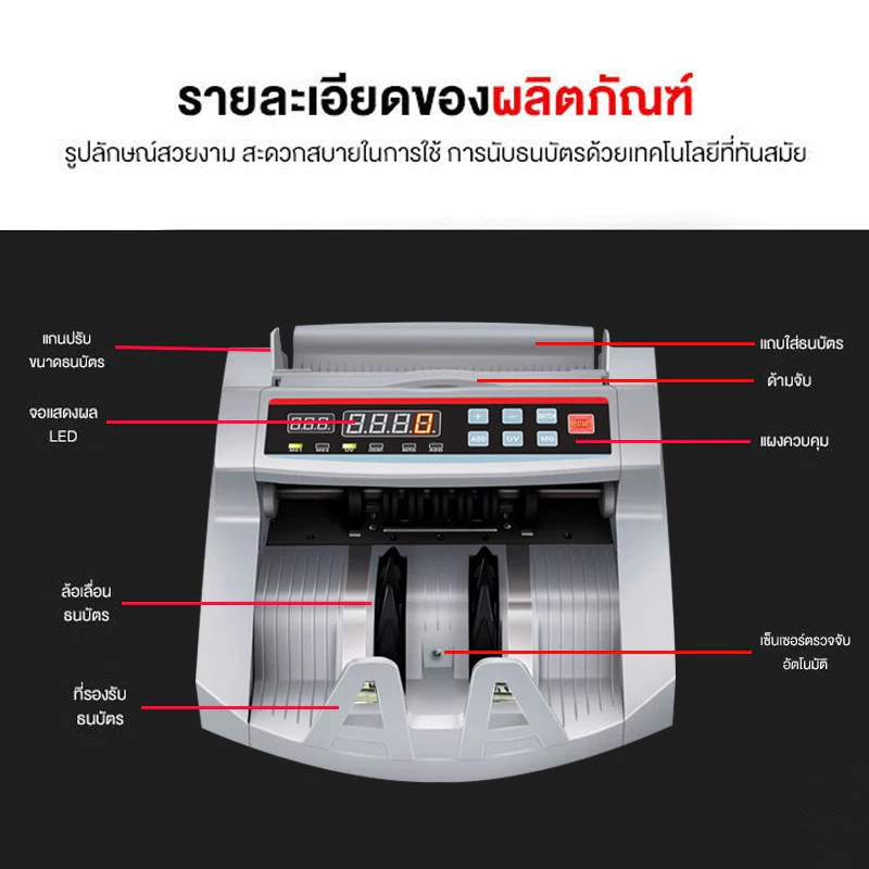 เครื่องนับธนบัตรธนาคาร 2 in1 หน้าจอแยก LCD ระบบตรวจแบงค์ปลอม UV/MG มอเตอร์80W นับต่อเนื่องได้ ทุกสกุลเงิน เร็วแม่นยำ