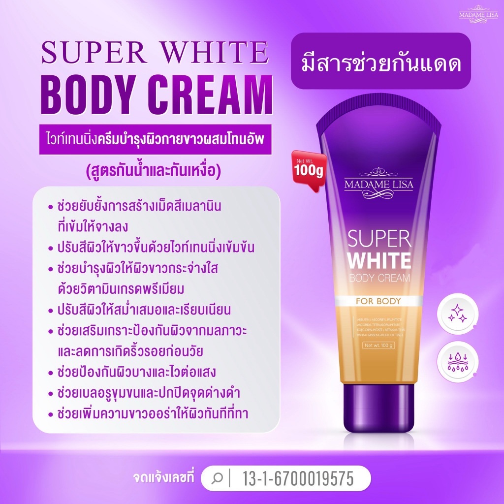 Super White Body Cream 100g. ของแท้บริษัท