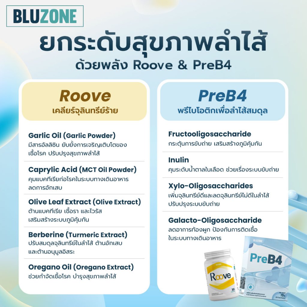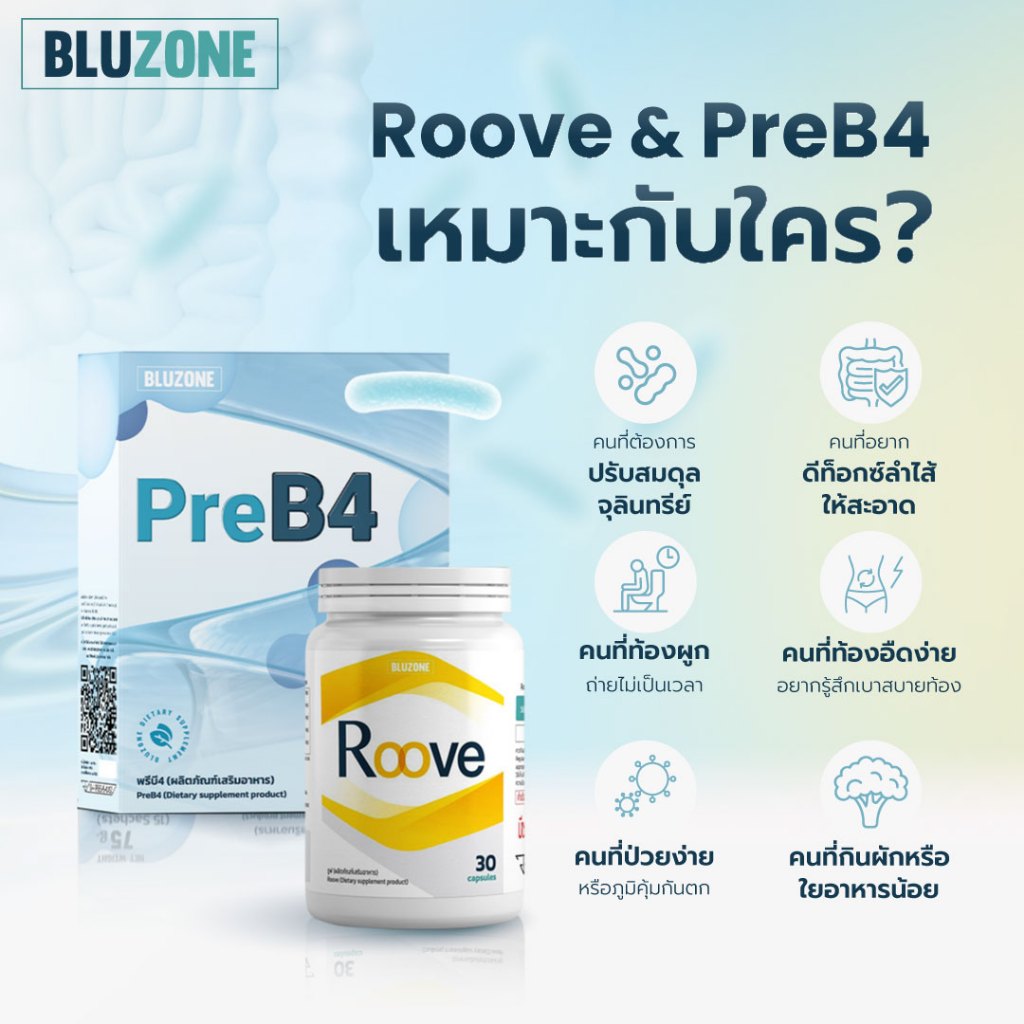 แพ็คคู่ PreB4 + Roove อย่างละ 1 กระปุก คู่หูดูแลลำไส้