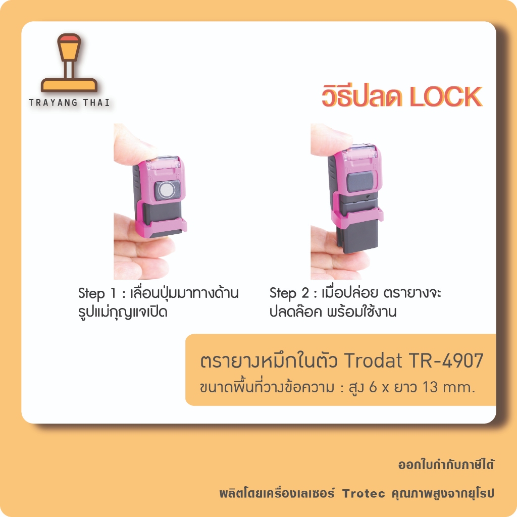 ตรายางหมึกในตัวแบรนด์ Trodat รุ่น TR-4907 (ขนาด 6 x 13 mm.)