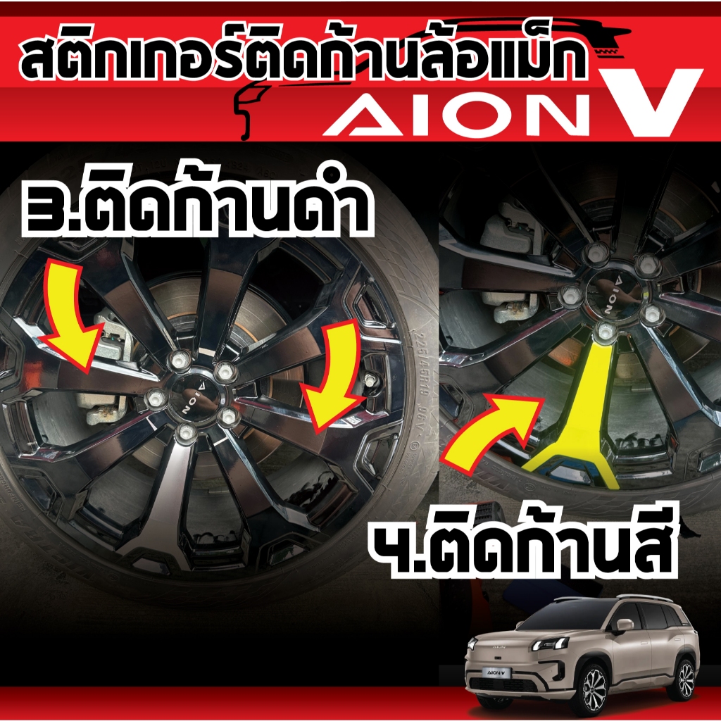 สติกเกอร์ติดก้านล้อแม็ก AION V (ดำเงา+1ก้านสี) เพิ่มดุดัน เข้ม สวยงาม กันรอย