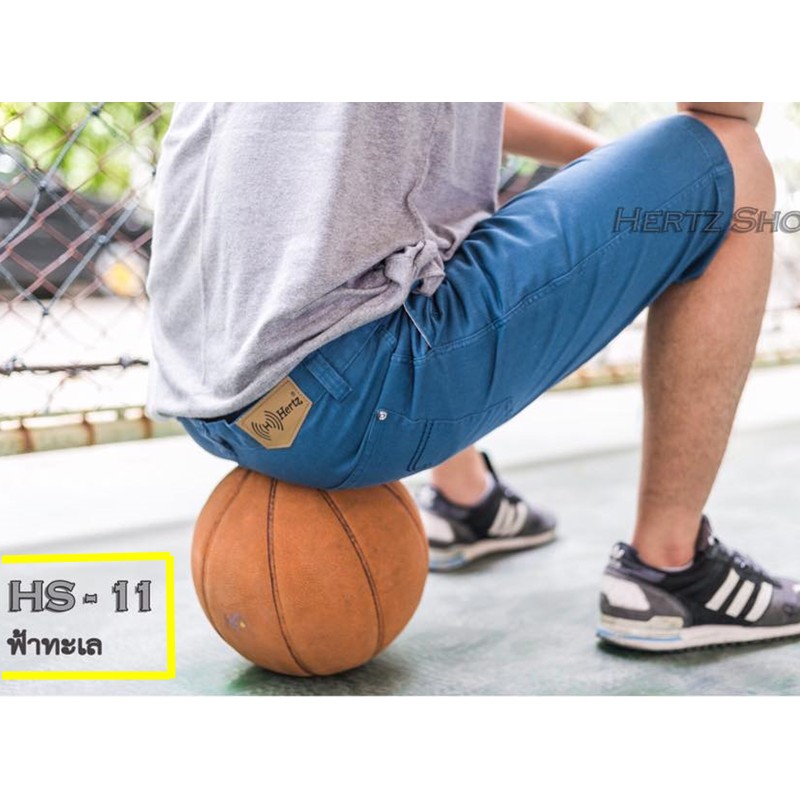 HERTZ SHOP กางเกงขาสั้นผู้ชาย รุ่นHertz ฟอกนิ่ม สีไม่ตก💯% สีฟ้าทะเล