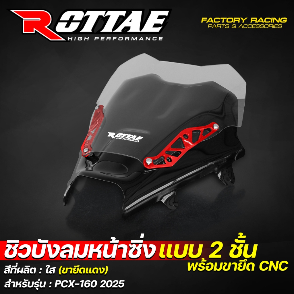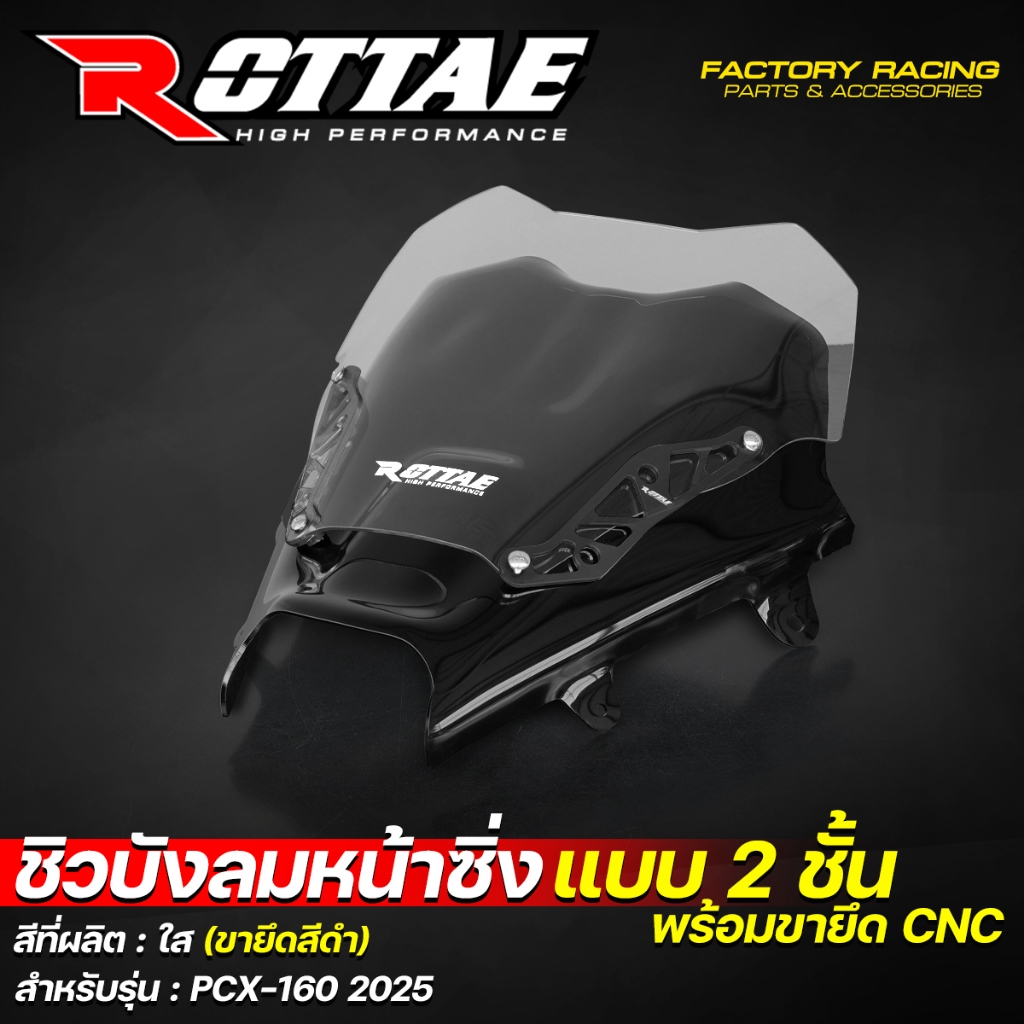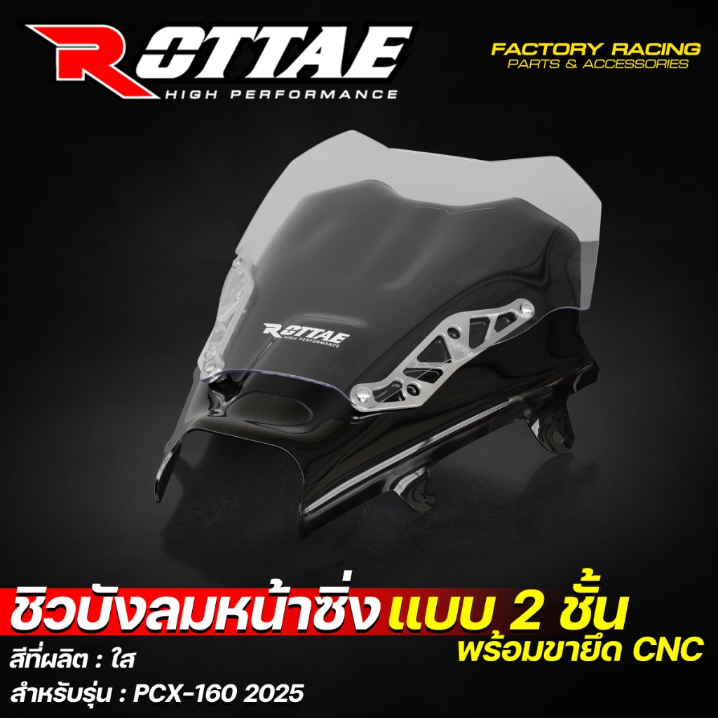 ชิวบังลมหน้าซิ่ง ชิวบังลมหน้า ชิวหน้าแต่ง ROTTAE สีใส สำหรับ PCX-160 ปี 2025 (**แบบ 2ชั้น + พร้อมขายึด CNC)