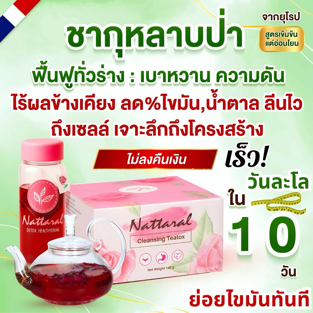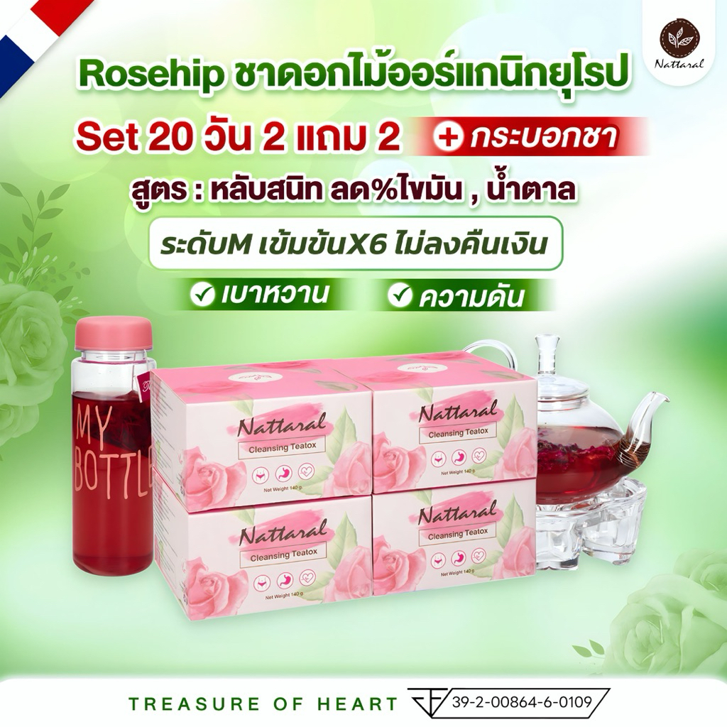 คอร์ส20วัน 2แถม2+ขวดชา [ทานได้ถึง40วัน] โปรM ไม่เห็นผลคืนเงิน Rosehipชายุโรป ลดไขมัน,น้ำตาลอ่อนโยน เบาหวาน,ความดัน มีอย.