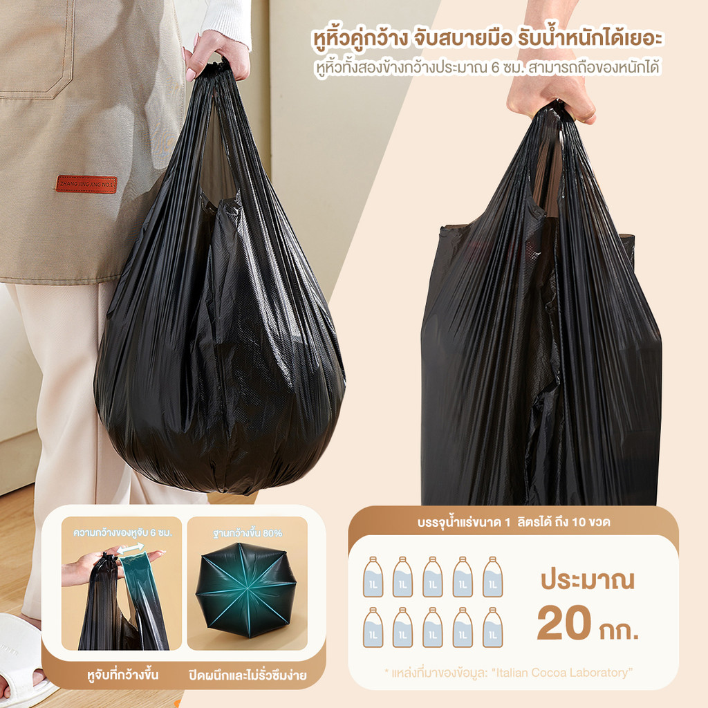 ถุงขยะพลาสติกพร้อมสายหูหิ้ว ถุงขยะ ถุงขยะม้วนแพค ถุงขยะแบบฉีก ถุงขยะอเนกประสงค์ ไม่ฉุน รักสิ่งแวดล้อม
