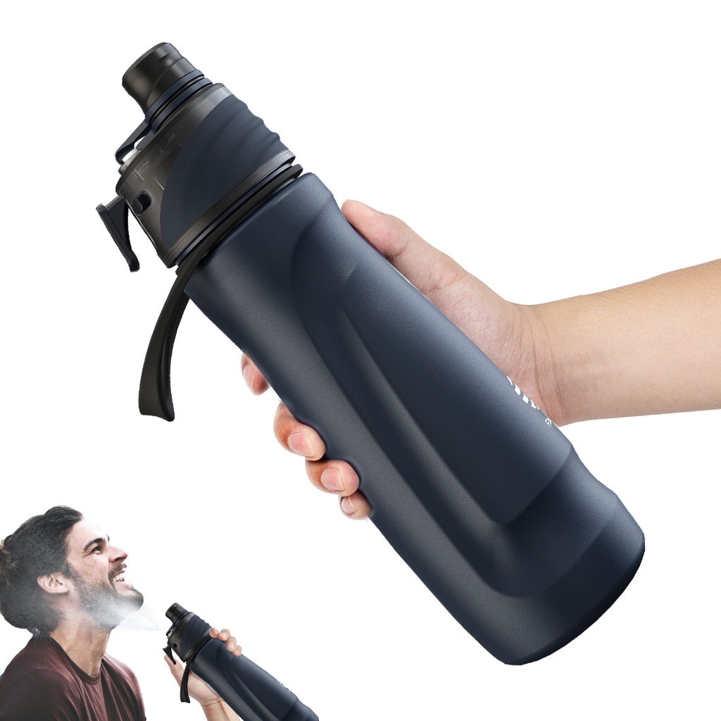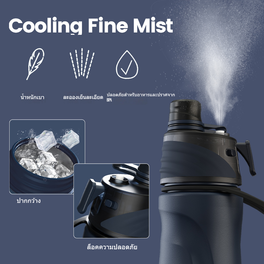 FJbottle 710ml ขวดน้ำสเปรย์น้ำขวดน้ำสแตนเลสขวดน้ำพร้อมหมอกสเปรย์และฉนวนกันความร้อนขวดน้ำกีฬารั่วไหลสำหรับยิมปีนเขากิจกรร
