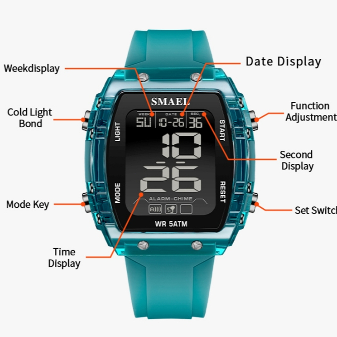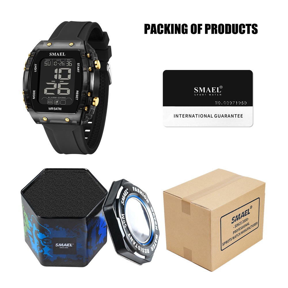 SMAEL 8108 นาฬิกาสำหรับผู้ชาย อเนกประสงค์ ใช้ได้ทั้งกลางแจ้งและในร่ม ระบบเตือนภัย จับเวลา เรืองแสงในที่มืด ทนน้ำและกันกร
