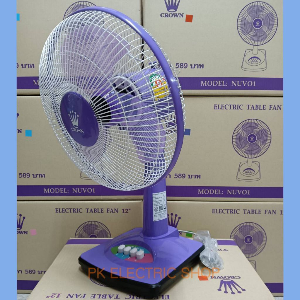 CROWN พัดลมตั้งโต๊ะ12" รุ่น NUV01 ผลิตในประเทศ ฉลากประหยัดไฟ คละสี ระบุสีทักแชท ประกันศูนย์ 1 ปี
