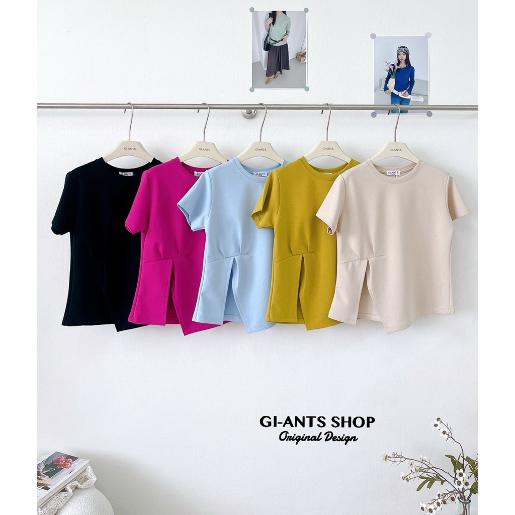 GI-ANTS (GI-422) เสื้อยืดคอกลมแขนสั้น ดีเทลผ่าหน้า งานสไตล์korea