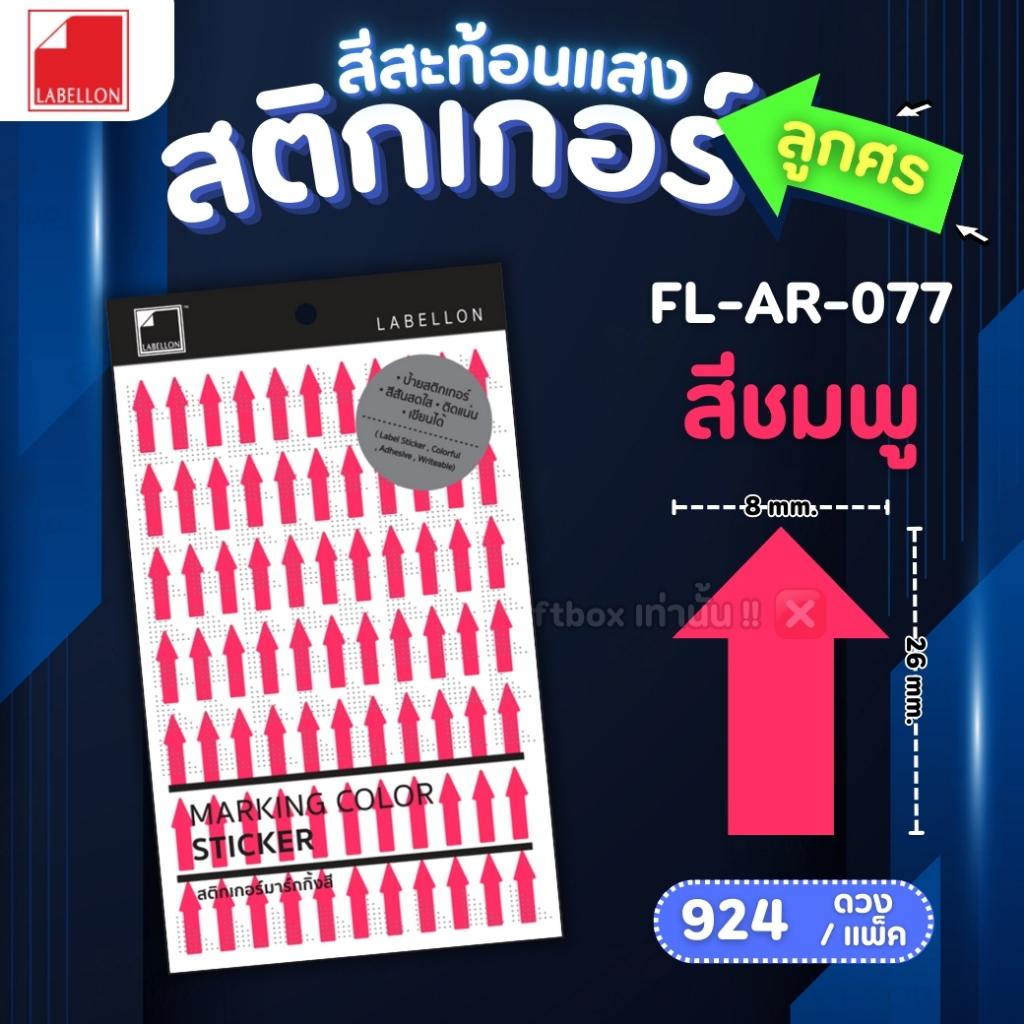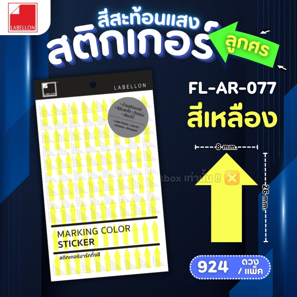 LABELLON สติกเกอร์สีสะท้อนแสง ลูกศร 26x8mm. FL-AR-077 (แพ็ค12แผ่น) สติกเกอร์มาร์กกิ้งสีสะท้อนแสง