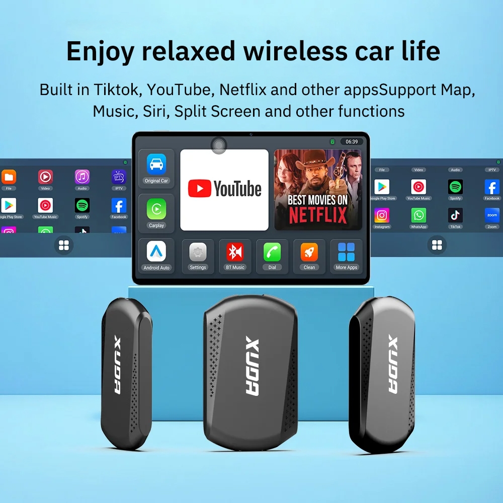 XUDA 2026 ใหม่ 4+64GB Android 14 3In1 CarPlay Ai กล่องไร้สาย Android อะแดปเตอร์ USB อัตโนมัติสําหรับ Youtube Netflix Red Note Universal กล่อง Plug And Play