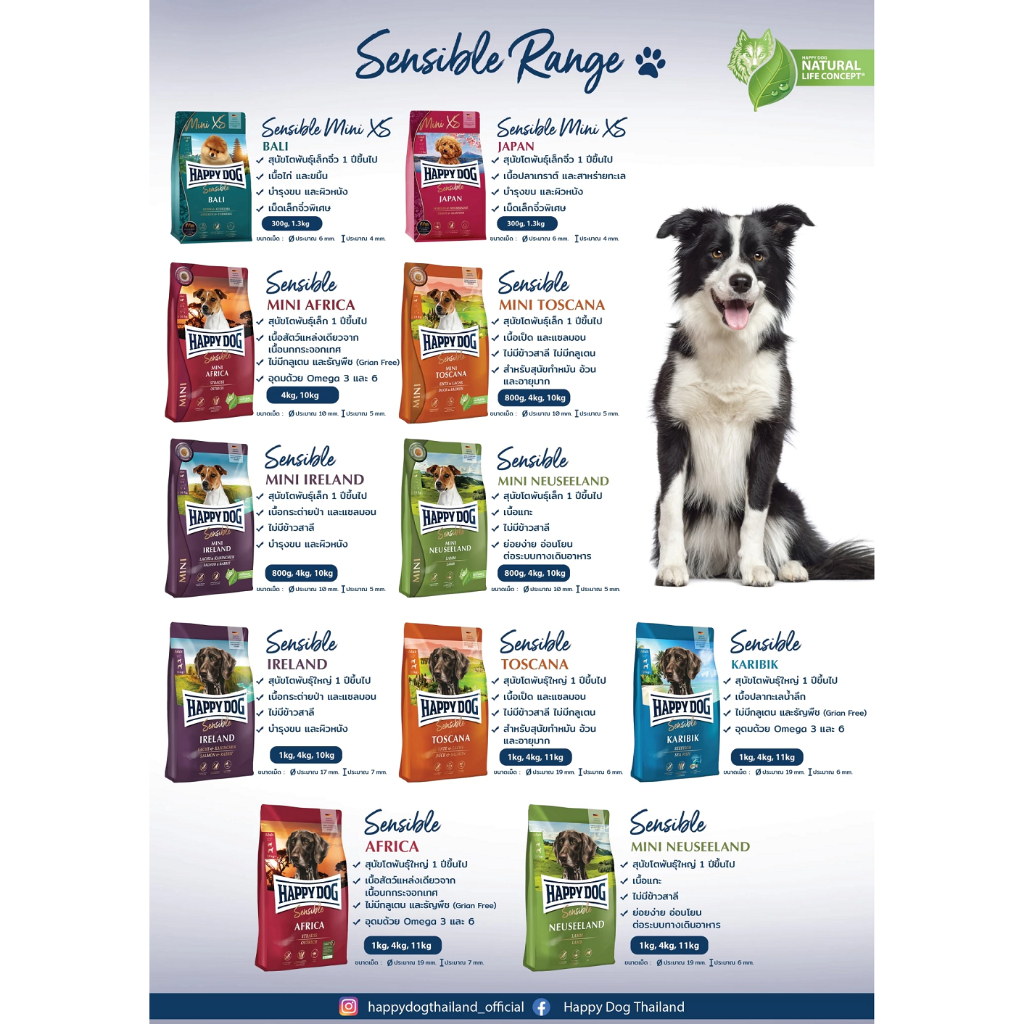 Happy Dog Mini อาหารสำหรับสุนัขโตและลูกสุนัขพันธุ์เล็ก สูตรสมบูรณ์ดูแลครบทั้งร่างกาย ขนาด 800g.