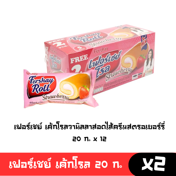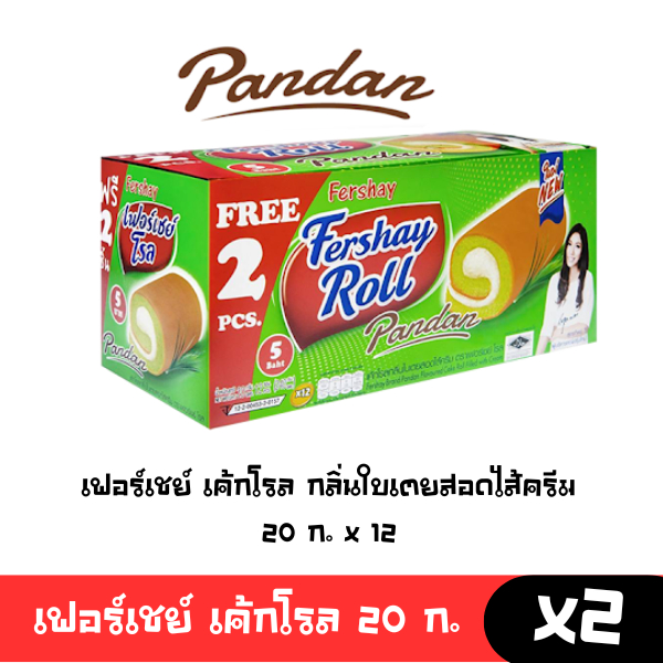 [พร้อมส่ง🚛มีโค้ดลด]เฟอร์เชย์ Fershay เค้กโรลไส้ครีม ใบเตย วานิลลา ช็อคโกแลต กล่องใหญ่ 240 กรัม 12+Free 2 (14 ชิ้น)🔔