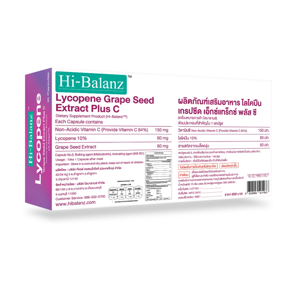 [เซตรักตัวเองมากๆนะ x2] Hi-Balanz Lycopene Grape Seed Extract Plus C 1 กล่อง + Acelora Cherry Extract Plus 1 กล่อง