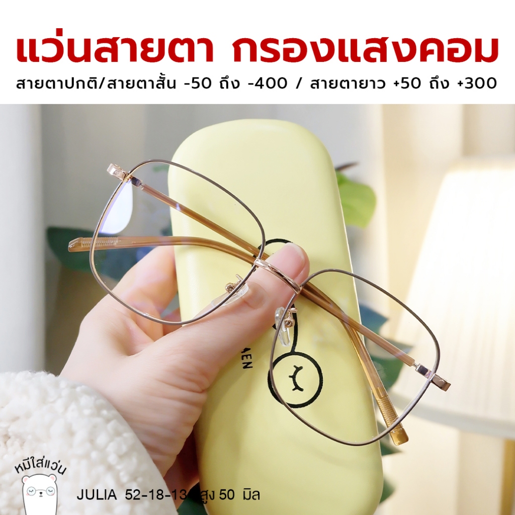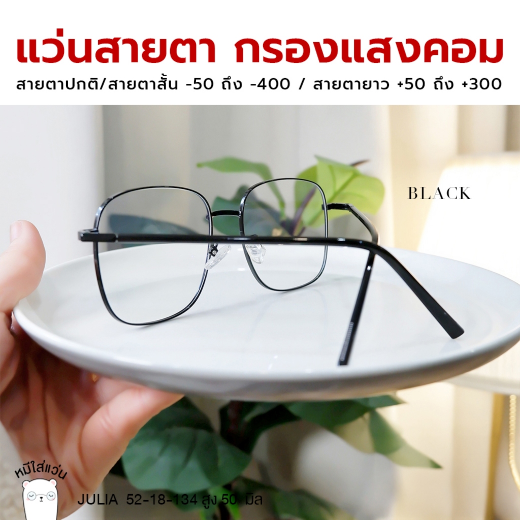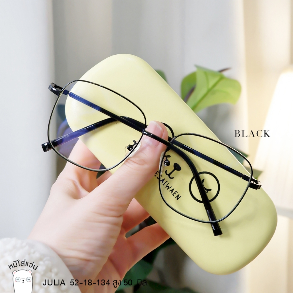 แว่นกรองแสง แว่นสายตาสั้น / แว่นสายตายาว กันแสงคอม บลูบล็อค Julia ดำ หมีใส่แว่น