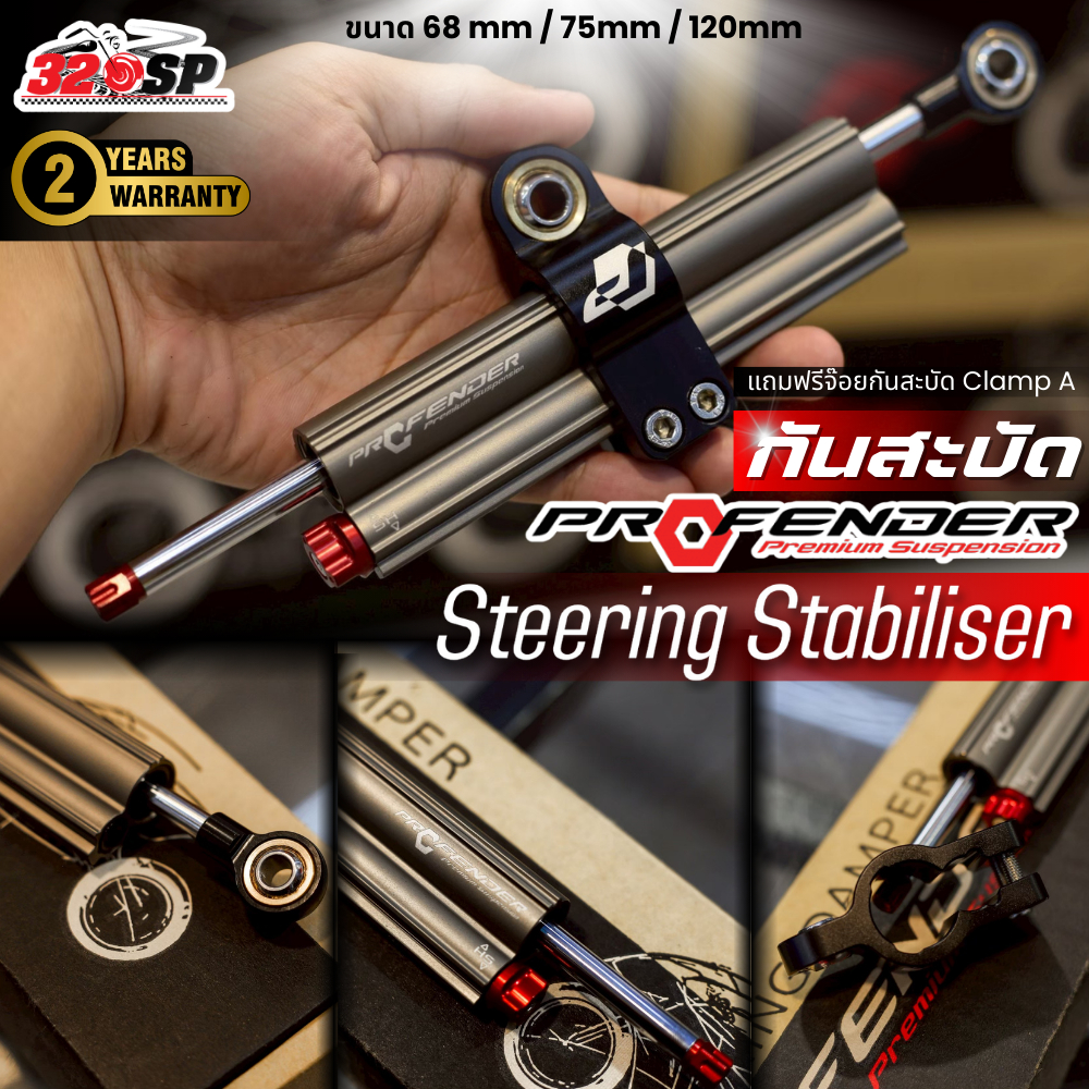 รับประกัน 2 ปี!! กันสะบัด PROFENDER Steering Stabiliser ขนาด68/75/120mm ใส่ได้กับทุกรุ่น พร้อมจ๊อยกันสะบัด Clamp A 320SP