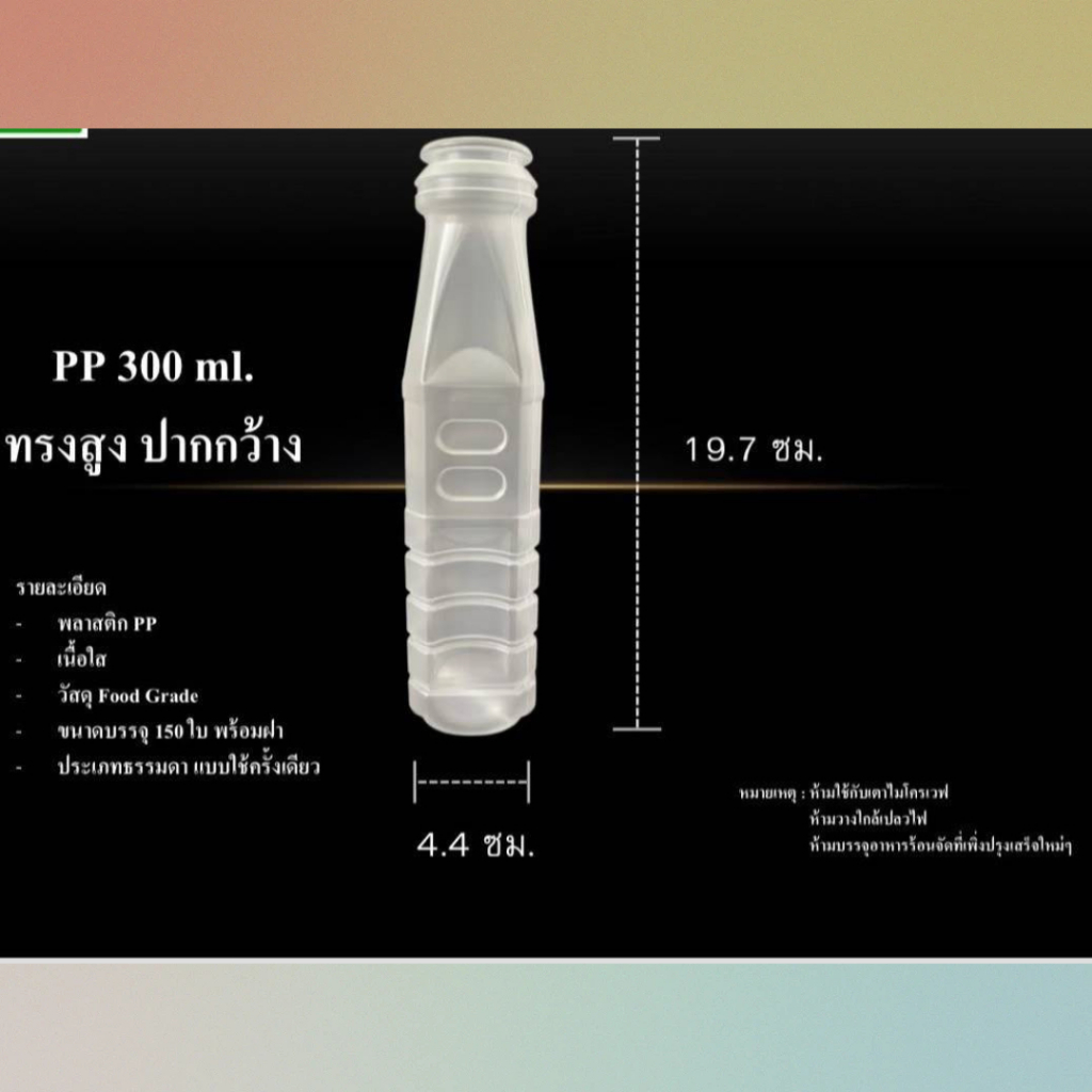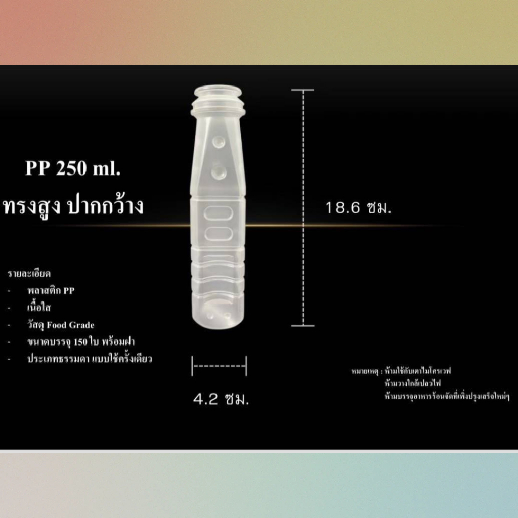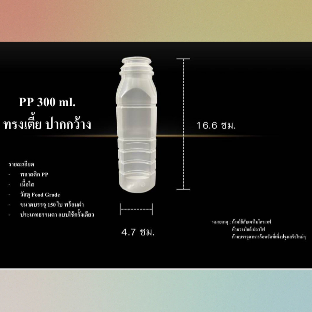 ขวดพลาสติก PP ขนาด 250 , 300 cc 150ใบ/แพ็ค สีขาวขุ่น พร้อมฝากด ใส่น้ำผลไม้ น้ำต้ม ชา กาแฟ