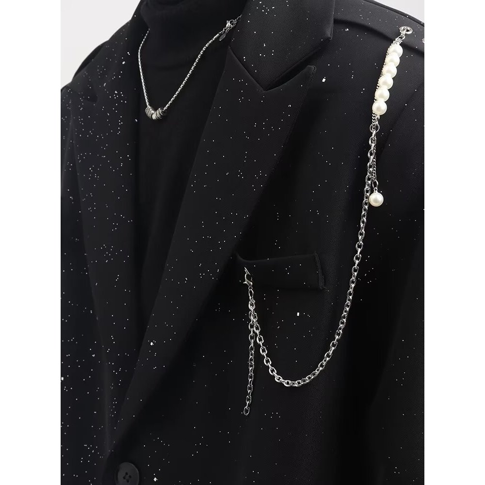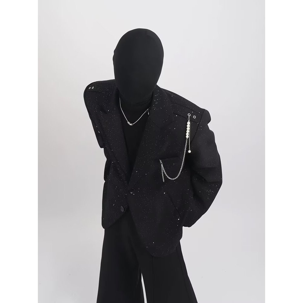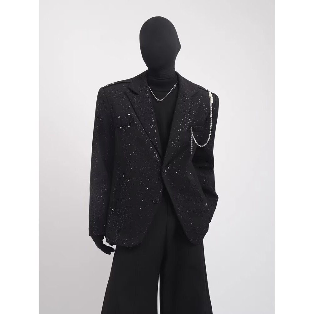 เสื้อสูทผู้ชายสไตล์เกาหลีอินเทรนด์ ทรงหลวมพร้อมลายปักเลื่อมสำหรับหนุ่มๆ