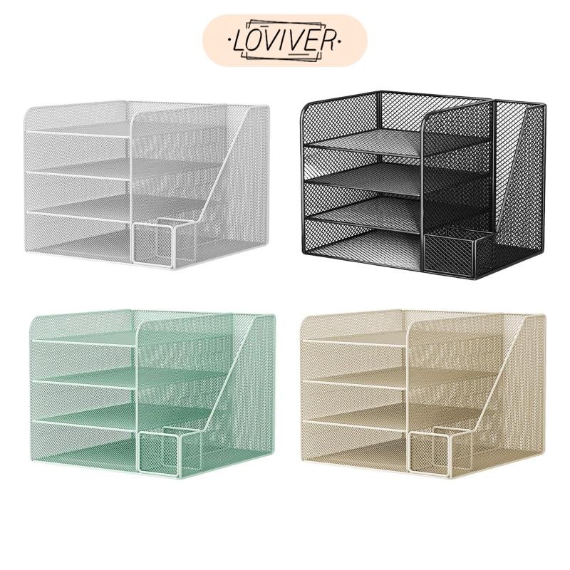 LOVIVER โต๊ะออแกไนเซอร์กระดาษจดหมายถาดตกแต่งอเนกประสงค์อุปกรณ์ตกแต่งตาข่ายผู้ถือไฟล์สําหรับเคาน์เตอร์