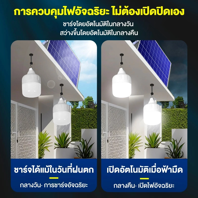 SUPWR【ซื้อ1แถม1】ไฟโซล่าเซลล์ โซล่าเซลล์ 80000W หลอดไฟ LED ไลท์แสงสีขาวกันน้ำ IP67 และกันฝุ่นละออง ชาร์จไฟอัตโนม