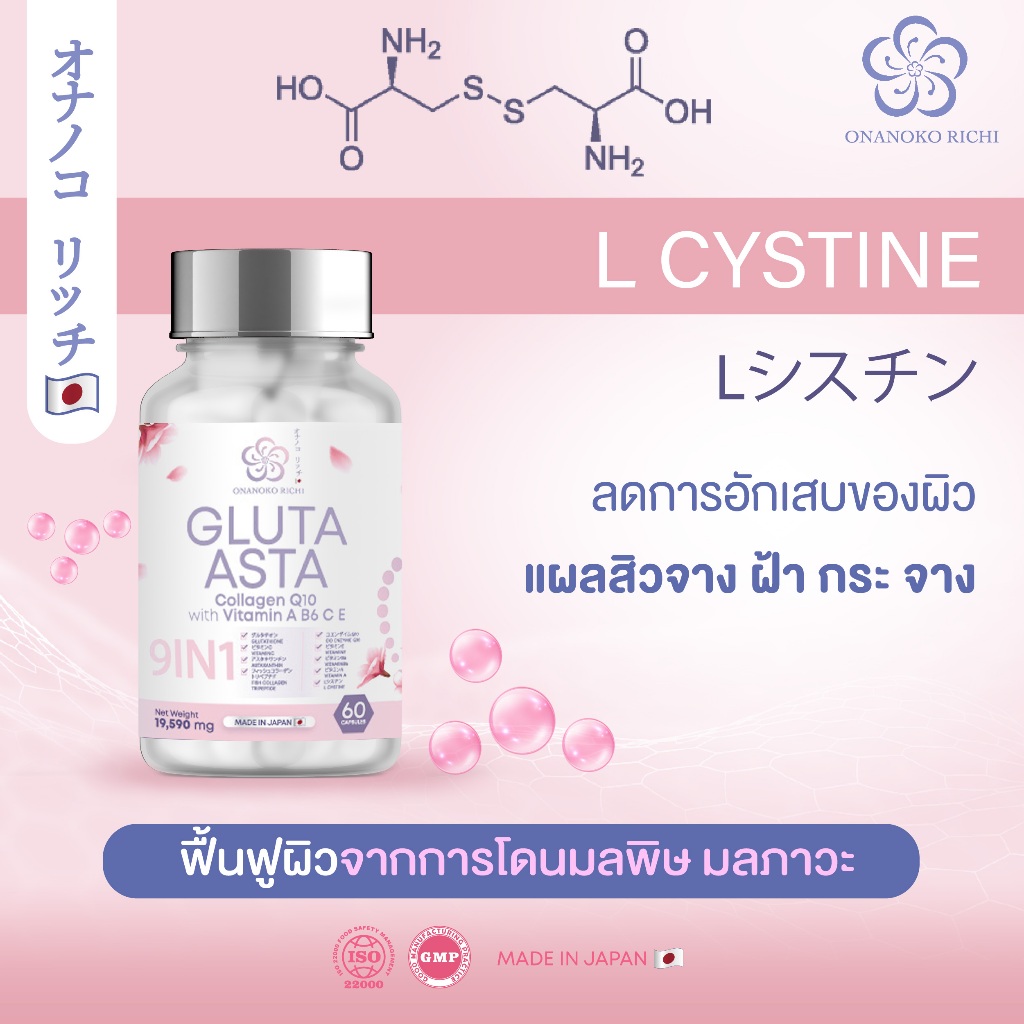 กลูต้าแอสตร้า onanokorichi โอนาโนโกะริจิ วิตามินผิวผลิตจากประเทศญี่ปุ่น