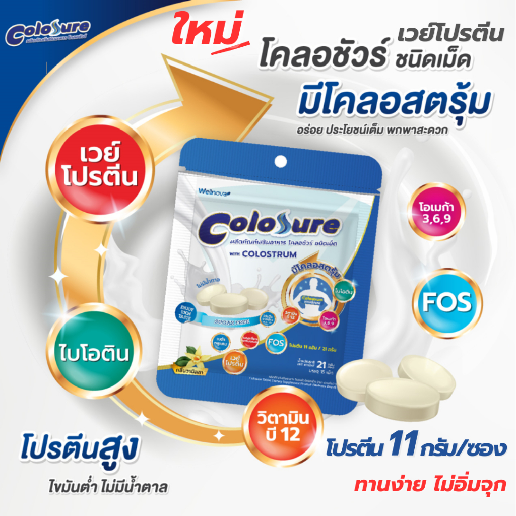 พิเศษ Colosure เวย์โปรตีนอัดเม็ด 1 กล่อง 12 ซอง 180 เม็ด อาหารเสริมสูตรครบถ้วนแบบใหม่
