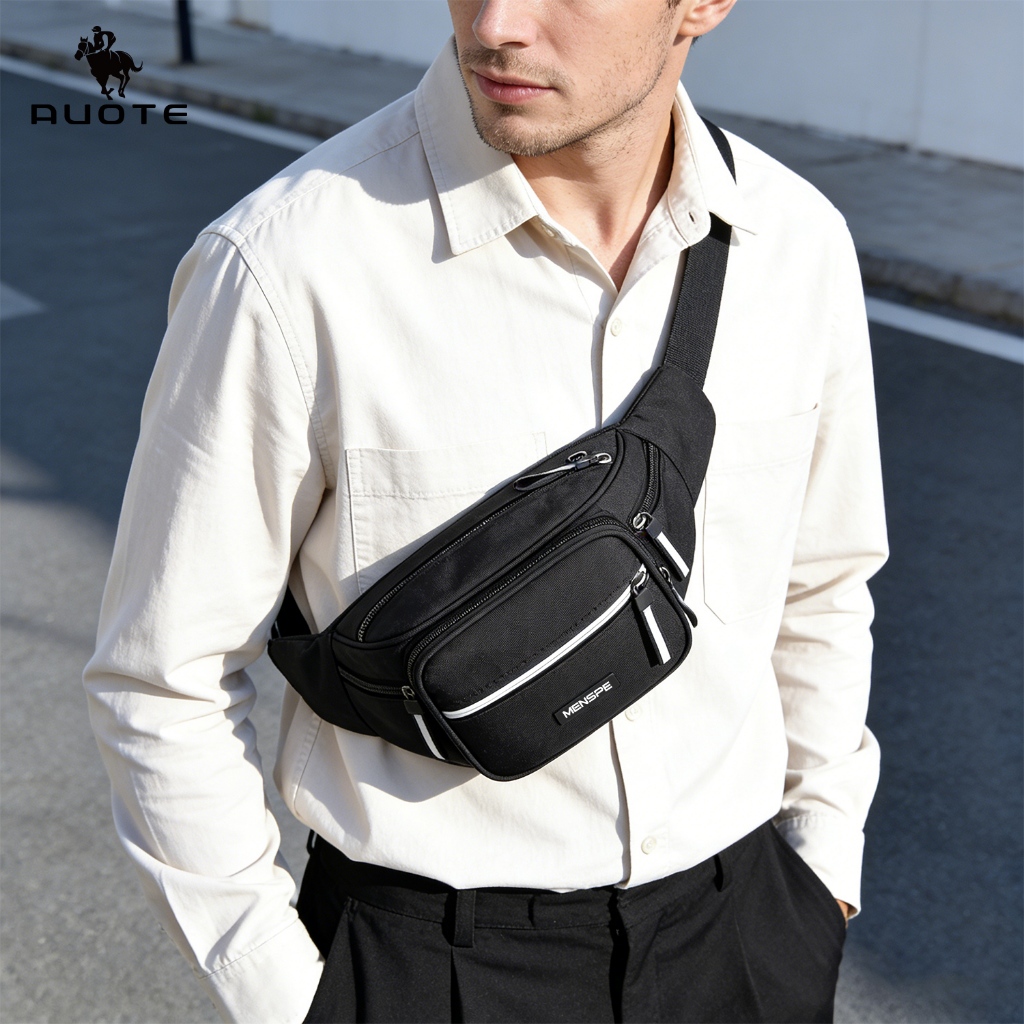 AUOTE กระเป๋าคาดเอวผู้ชายอเนกประสงค์ความจุขนาดใหญ่กระเป๋าคาดหน้าอก Casual Unisex Street กระเป๋าสําหรับผู้ชายผู้หญิง