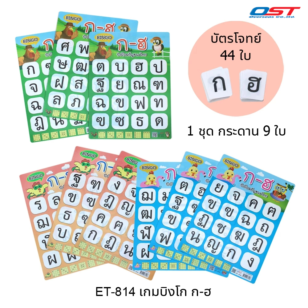 เกมบิงโก BINGO GAME ชุด อักษร A-Z, พยัญชนะไทย, สระไทย (กระดานเกมพลาสติก 9 ใบ พร้อมบัตรโจทย์)