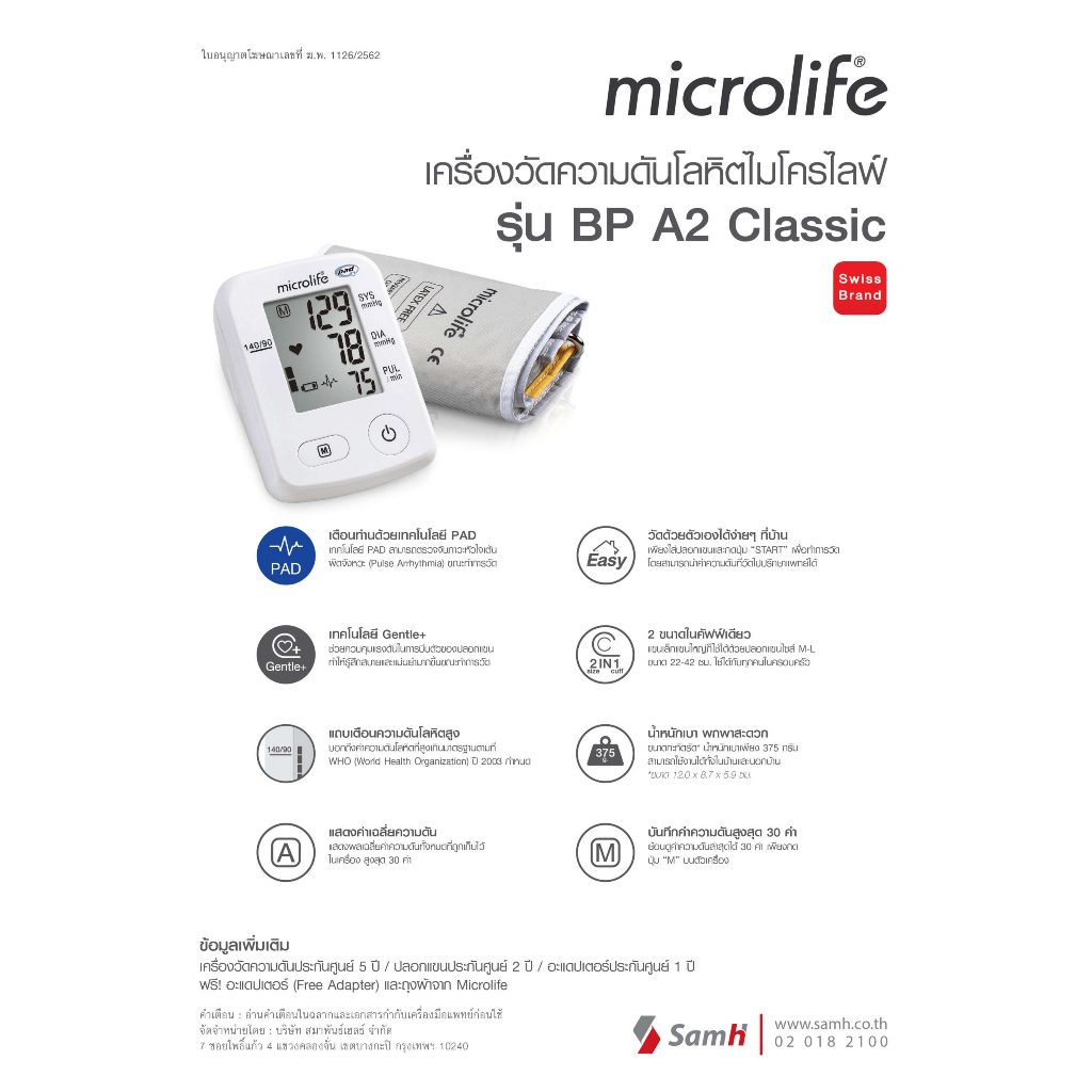 เครื่องวัดความดัน Microlife BP A2 Classic ระดับสากล #8149