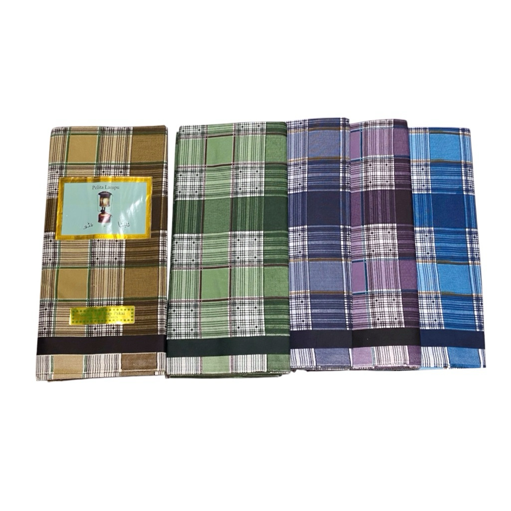 โสร่งชาย โสร่งมุสลิม เย็บแล้ว ตราตะเกียง (Pelita Lampu) ลายตาราง เนื้อผ้าใส่สบาย เย็บสำเร็จพร้อมนุ่ง