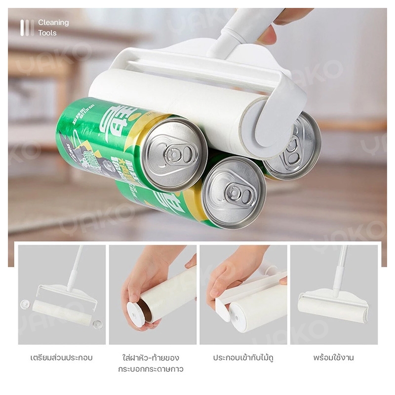 YAKO ลูกกลิ้งเก็บฝุ่น ลูกกลิ้งเก็บฝุ่น ลูกกลิ้งเก็บฝุ่น ขนาด24cm ที่กลิ้ง+10 ม้วนกาว ลูกกลิ้ง ลูกกลิ้งกระดาษกาว