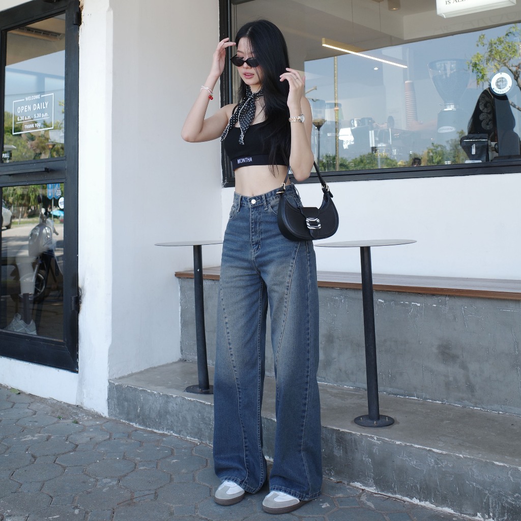 กางเกงยีนส์ขากระบอกแต่งขา รุ่น Bamboo Jeans