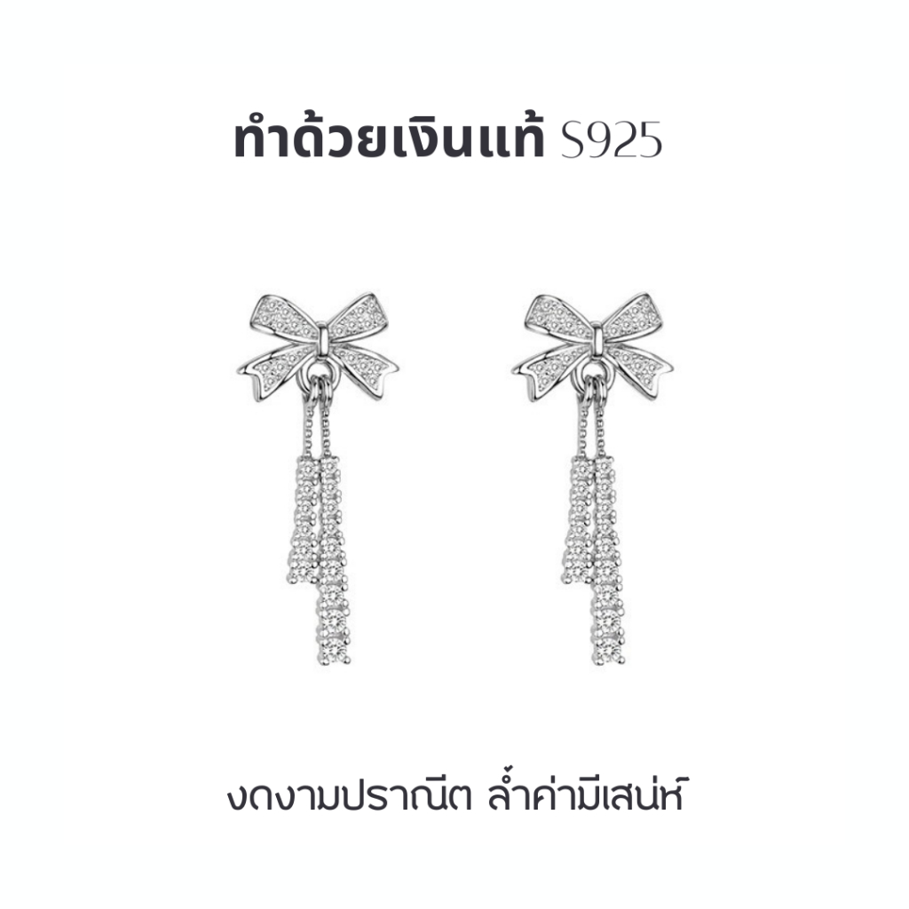 OUTLETS ล้างสต็อกจากโรงงานตรง ต่างหูเงิน Bow Tassel ต่างหูโบว์ Valentine ของขวัญ ต่างหูแฟชั่น