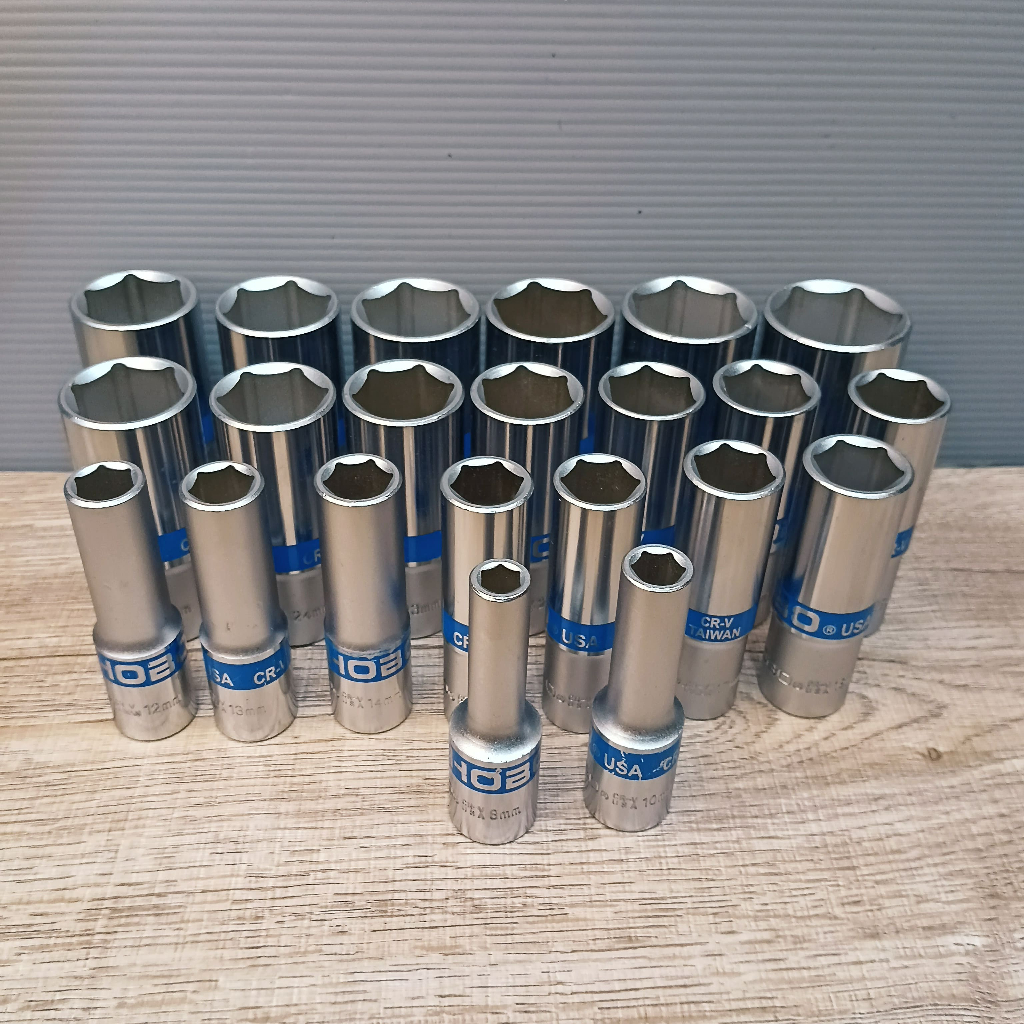 (MADE IN TAIWAN) HOBO ลูกบล็อกยาว 1/2"(4หุน) 6 เหลี่ยม เบอร์ 8 - 32 มม. แยกเบอร์ขาย