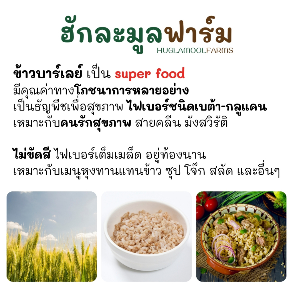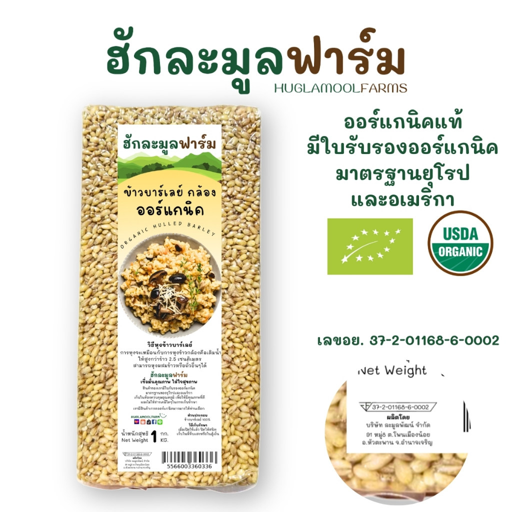 ซื้อ3แถม1 ข้าวบาร์เลย์ ออร์แกนิค 1kg ไม่ขัดสี ตราฮักละมูลฟาร์ม Organic Barley Grain บาเลย์ huglamoolfarm