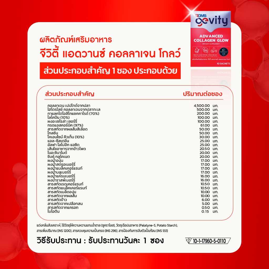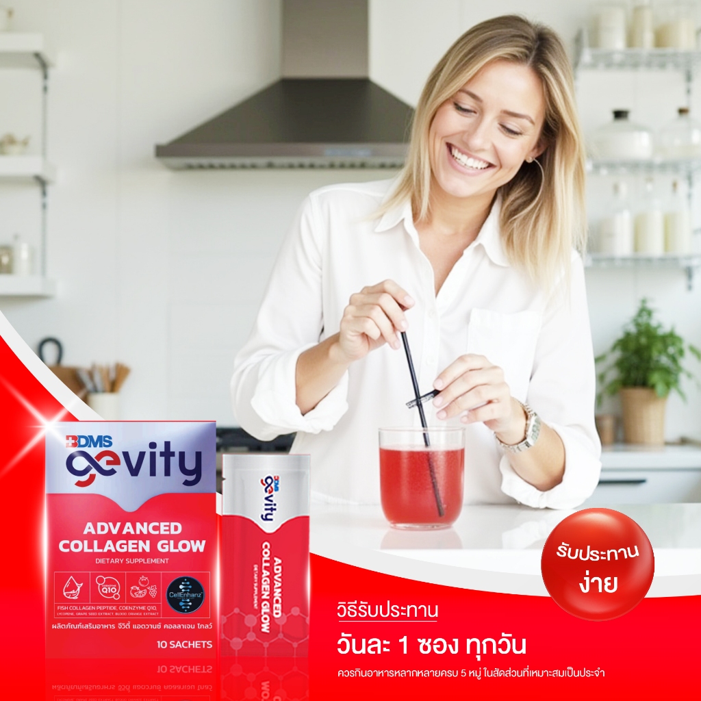 GEVITY ADVANCED COLLAGEN GLOW 5000 มก.คอลลาเจนเปปไทด์ โคเอนไซม์ Q10 ช่วยบำรุง ผิว ผม ข้อต่อ (10 ซอง)