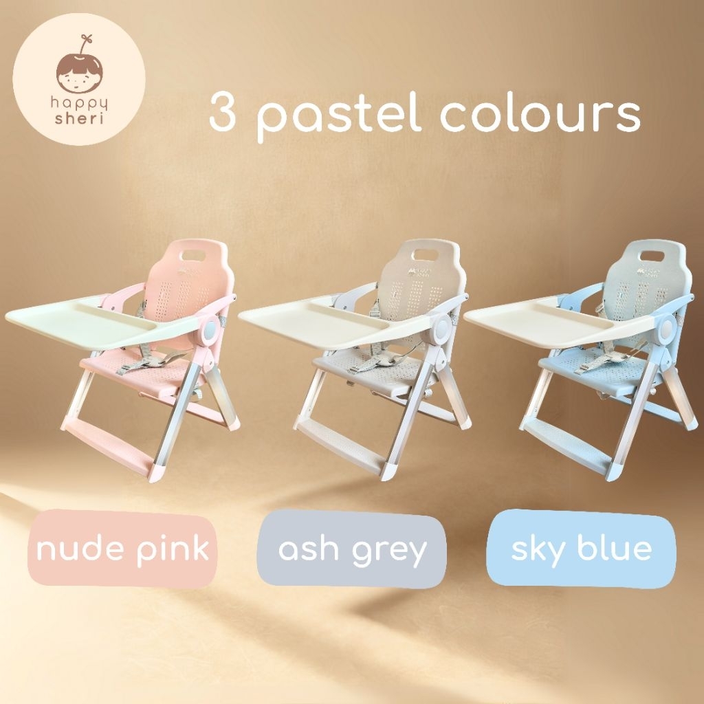 Happy Sheri เก้าอี้ทานข้าวเด็กพกพา (แถมฟรี bib) | happy dining booster เก้าอี้กินข้าวเด็ก น้ำหนักเบา พับได้ แถมกระเป๋า