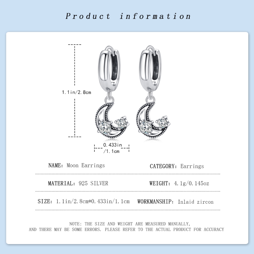 WKLQLQ ต่างหูเงินแท้ 925 ดีไซน์พระจันทร์ ประดับเพชร CZ สไตล์คลาสสิค ใส่สบาย ไม่ระคายเคืองผิว