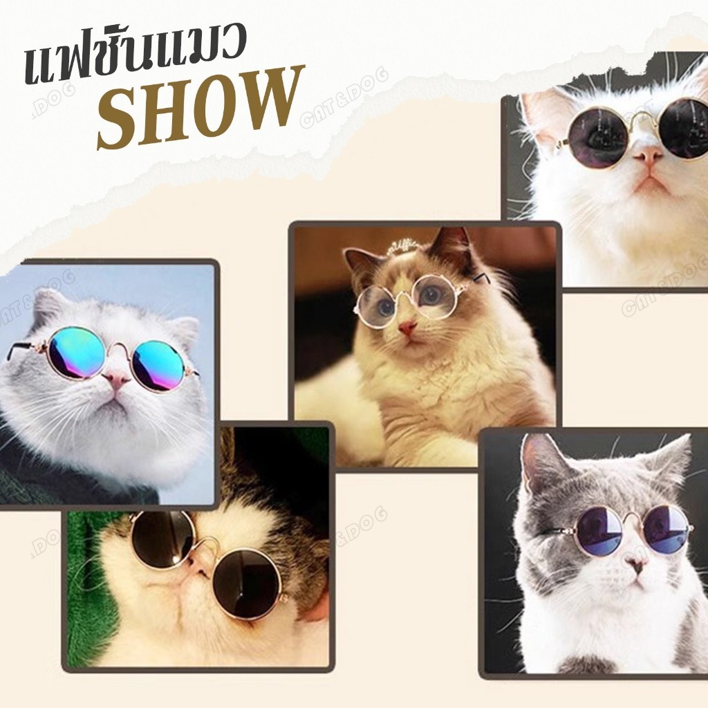 พร้อมส่ง แว่นตาสัตว์เลี้ยง แว่นแมว แว่นสุนัข กันลม กันฝุ่น ดีไซน์น่ารัก แถมฟรีสายคล้องแว่นกันลื่น
