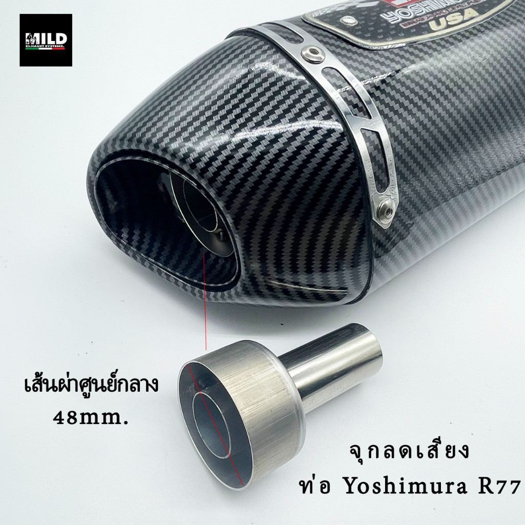 จุกลดเสียงท่อ Yoshimura R77 สวมรูปลายท่อเส้นผ่าศูนย์กลาง ขนาด 48mm.