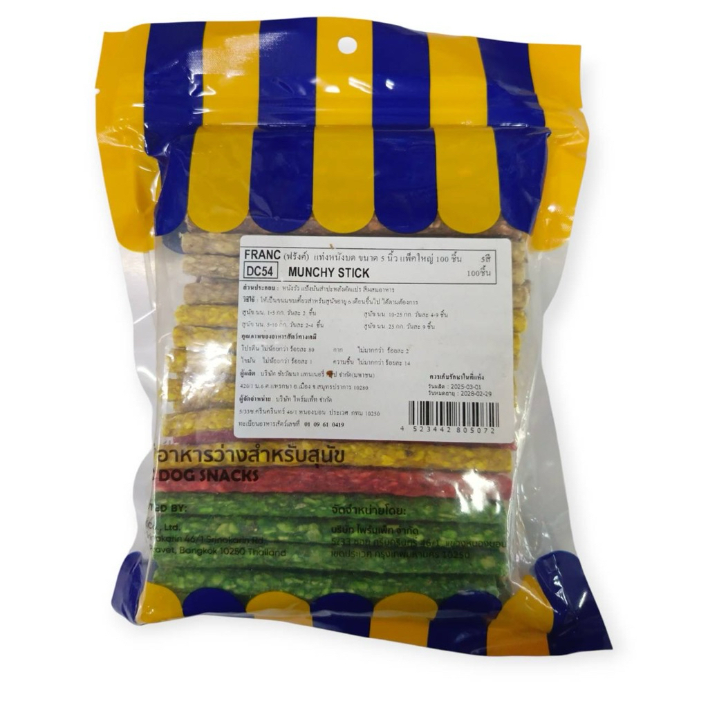 FRANCO AND BRO [FRANC] แท่งหนังเกลียว ขนมขัดฟัน สุนัข ขนมขบเคี้ยวสุนัข FRANC Dog Chews 100 ชิ้น 750 กรัม