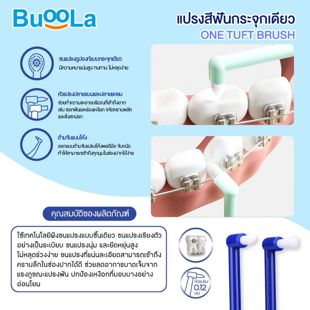 [Set คู่ 2 ชิ้น] Buoola แปรงสีฟัน1 แพค + แปรงกระจุก 1 แพค ขนแปรงนุ่ม ป้องกันฟันผุ