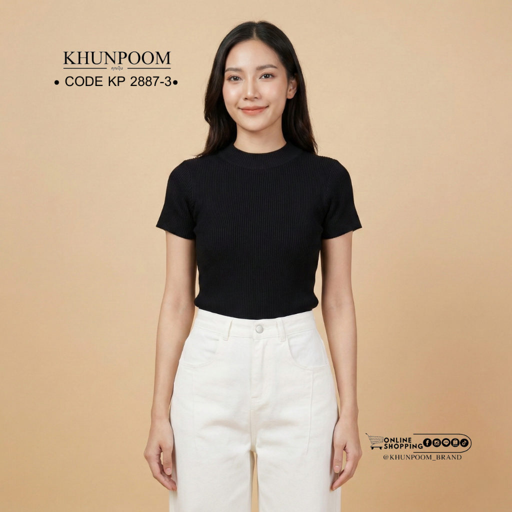 KP 2887-3 ออกแบบมาเพื่อเป็นไอเทมกันตาย ใส่ไปทำงานก็ดูสุภาพ ใส่ไปคาเฟ่ก็น่ารัก ดีไซน์คอกลมกึ่งสูงนิดๆ