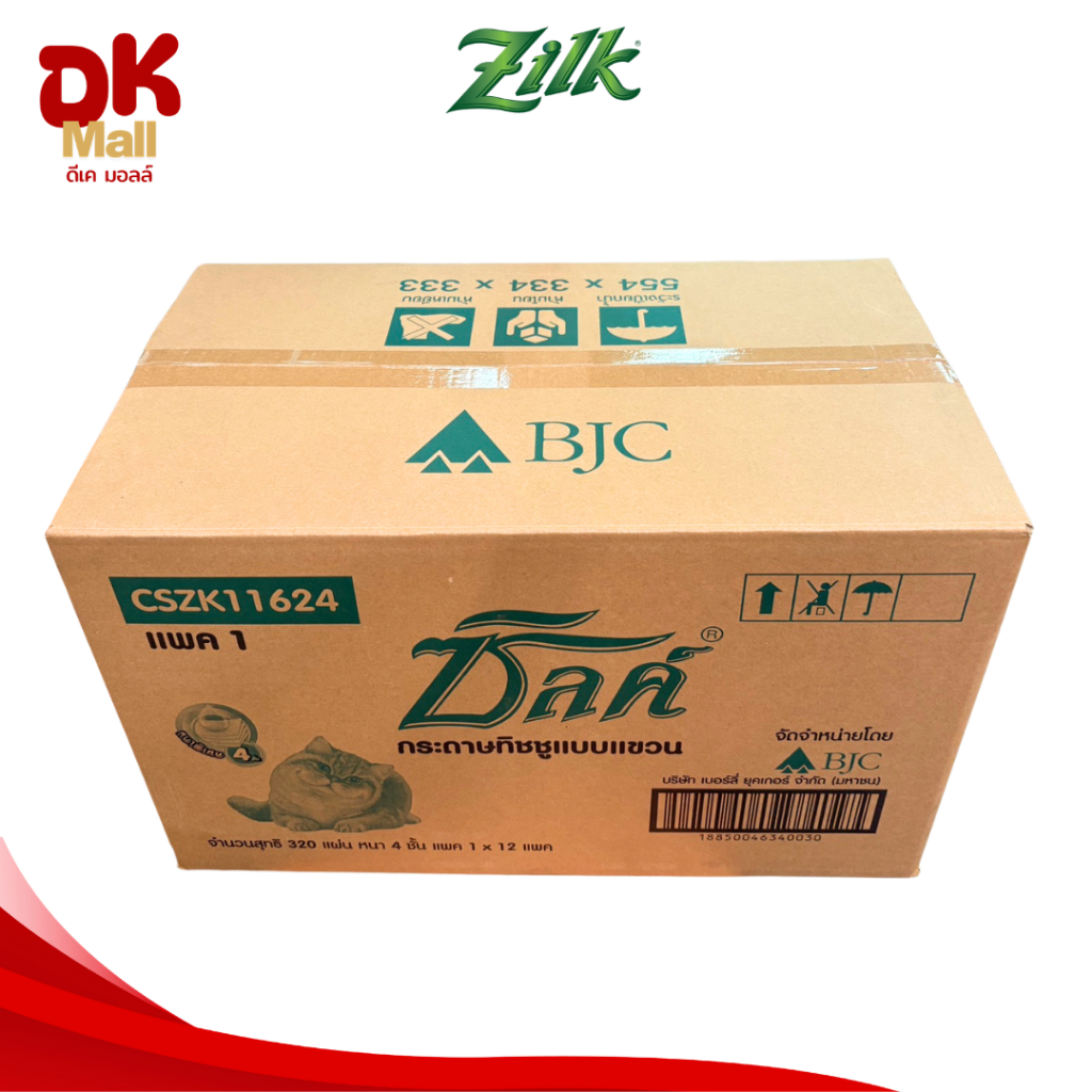 Zilk Hanging Tissue ซิลค์ กระดาษทิชชู่แบบแขวน หนานุ่ม 4 ชั้น 320 แผ่น (ยกลัง 12 แพ็ค)
