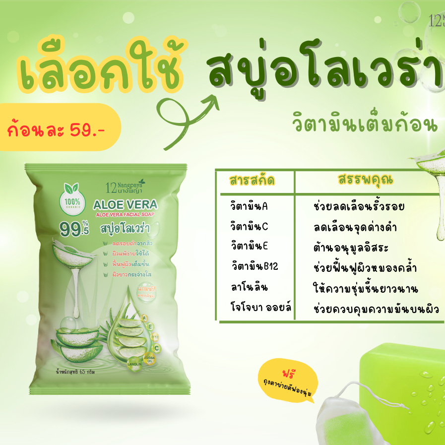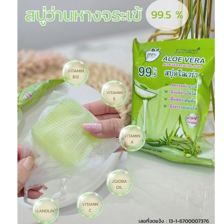 ใหม่ สบู่อโลเวร่า 12นางพญา ฟรีตาข่ายตีฟอง 100%ออแกนิค หน้าไม่เอี๊ยด (1 กล่อง 5 ซอง)
