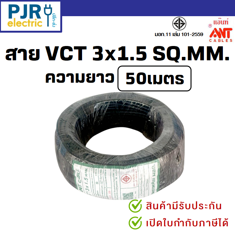 *PJRW*มีขายส่ง**ยกขด**ยาว 50 เมตร** มอก.เต็ม รุ่น สมอ.รับรองมาตรฐาน สายไฟ VCT ขนาด 3x1.5 , 3x2.5 ยี่ห้อ ANT