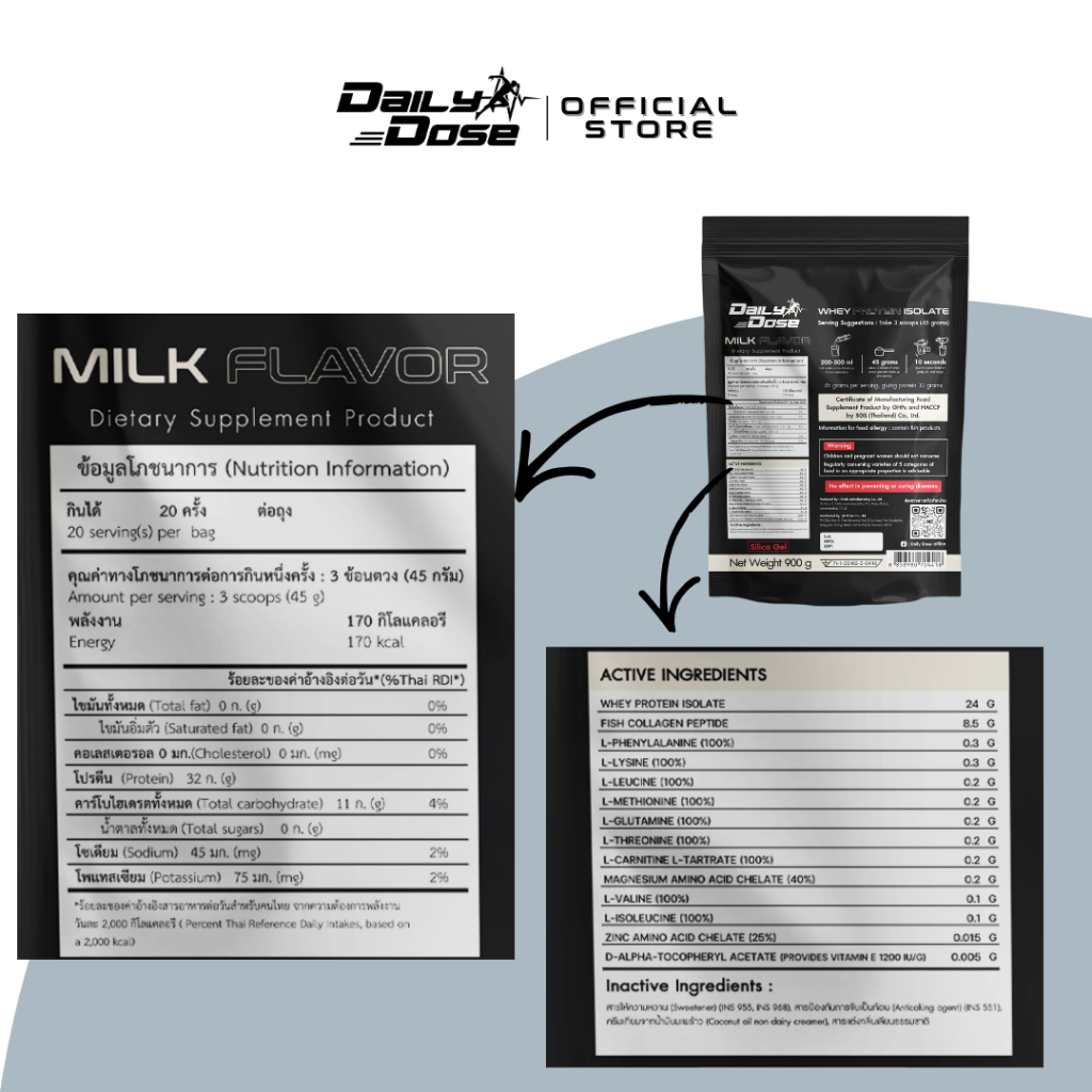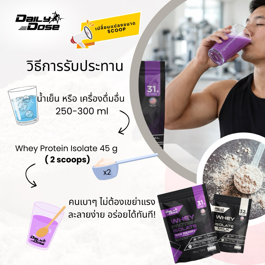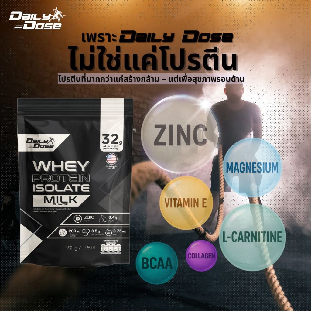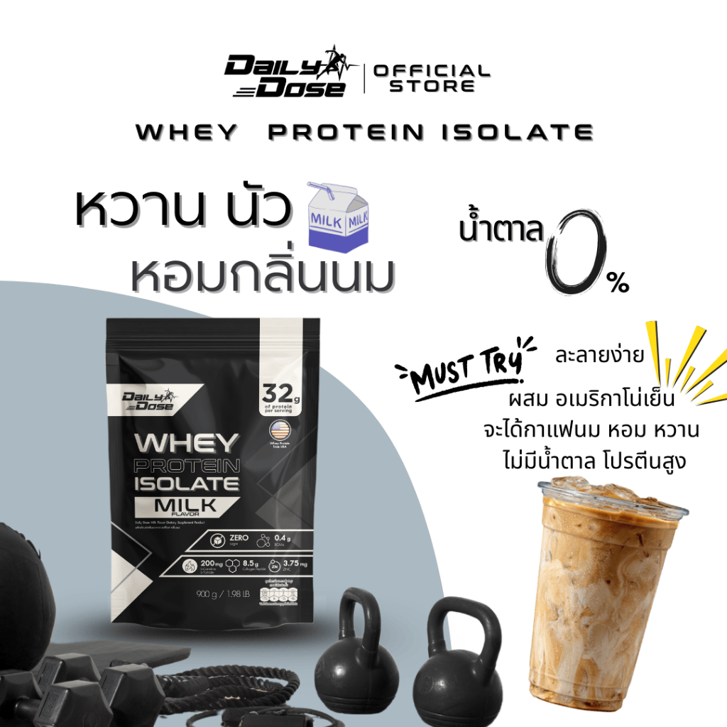 พร้อมส่ง x3 แพ็ค Daily Dose เวย์ โปรตีน ไอโซเลต 900 กรัม รสนม Whey Protein Isolate โปรตีน 32g