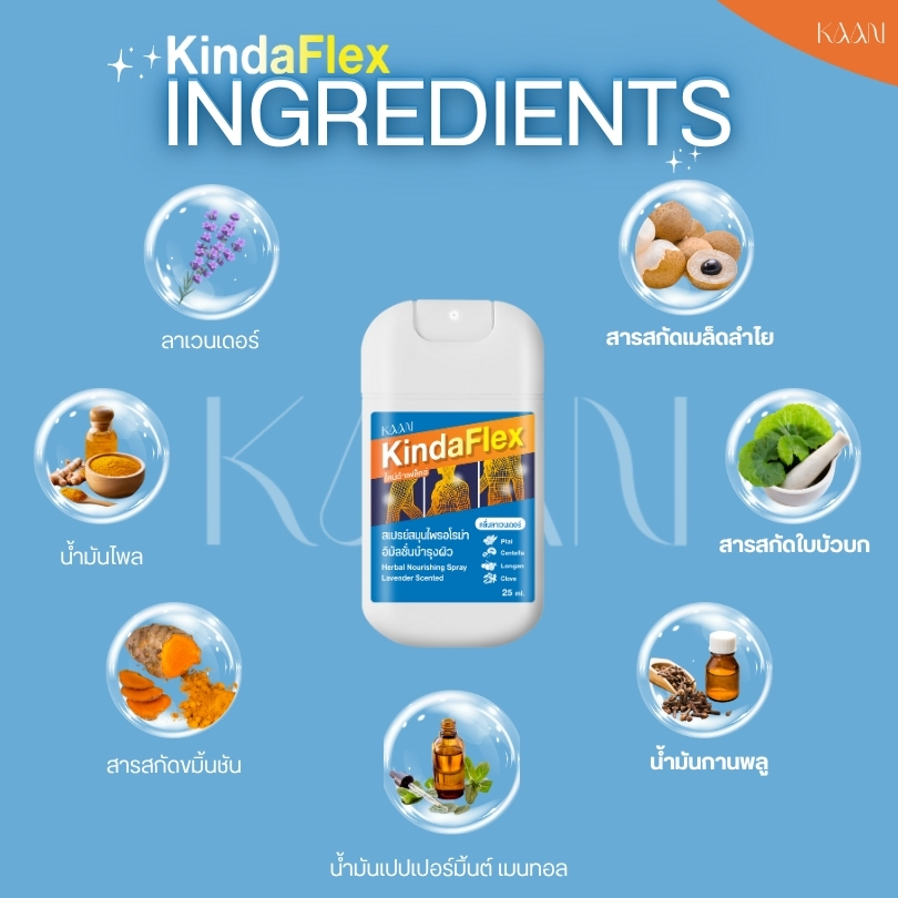 KindaFlex สเปรย์สมุนไพรอโรม่า อิมัลชั่นบำรุงผิว - 25ml (แถมฟรี เคส!)