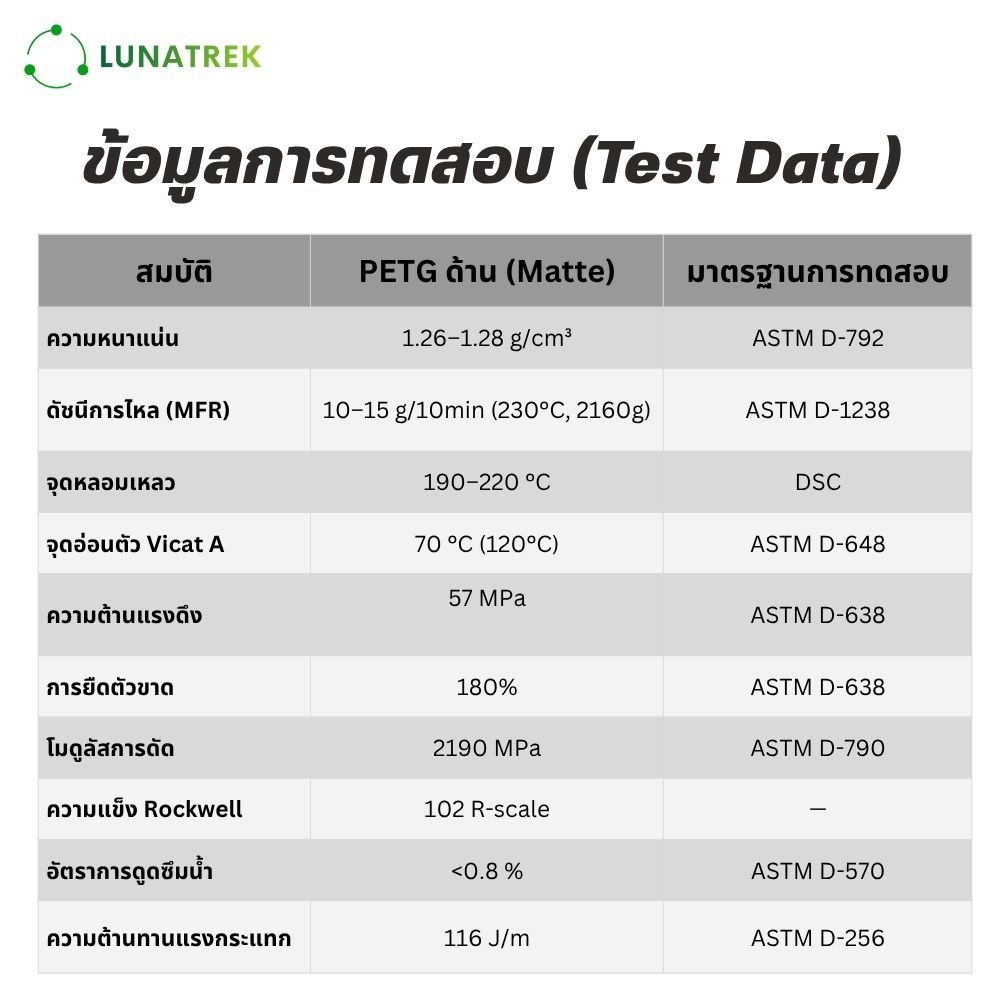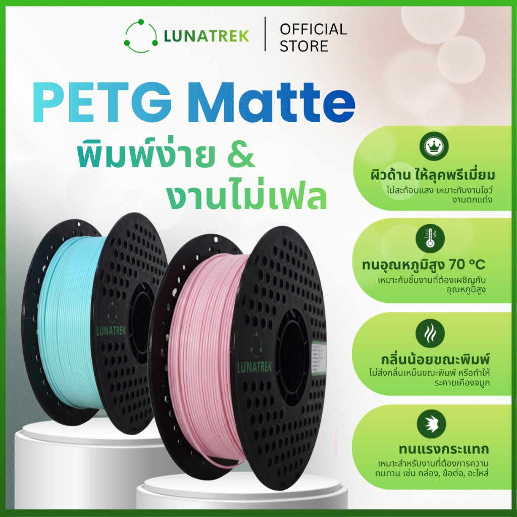 LunaTrek PETG Matte เนื้อด้าน Filament 3D printing วัสดุคุณภาพพิมพ์ 3 มิติ 1.75 mm